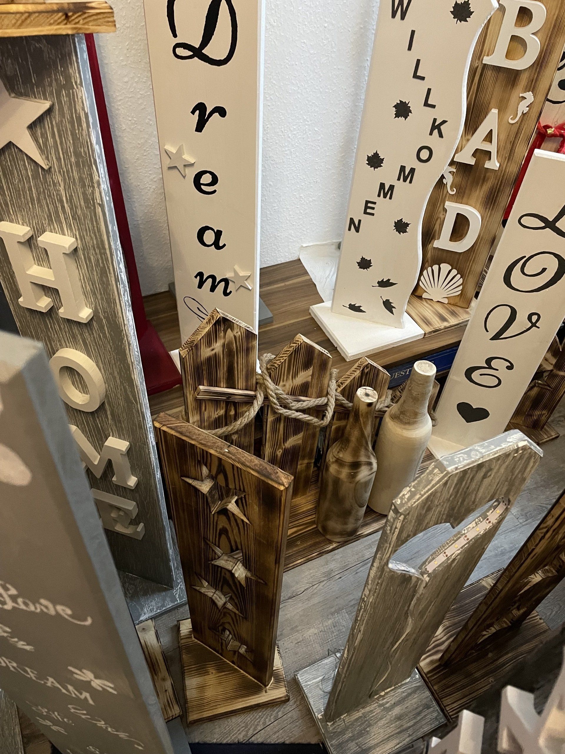 Ich fertige Steelen nach Wunsch an: für indoor oder outdoor. Die Größe, Farbe, Beschriftung, Form - alles individuell anpassbar. Ob mit Licht, ohne Licht oder batteriebetrieben für Orte ohne Stromzufuhr.